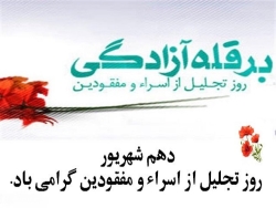فرا رسيدن روز تجليل از اسرا و مفقودان دفاع مقدس، فرصت گرامي داشت هشت سال حماسه و عشق و شجاعت، بر پاي مردان سنگر حق در برابر باطل فرخنده باد